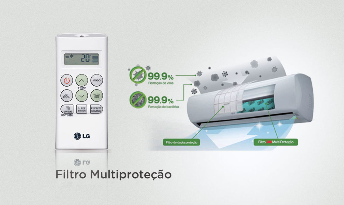 E o melhor de tudo: esse ar-condicionado mara ainda se preocupa com a sua saúde! O filtro Multiproteção tem tecnologia 3M que remove 99,9% dos vírus e bactérias, além de eliminar a poeira com mais eficiência.