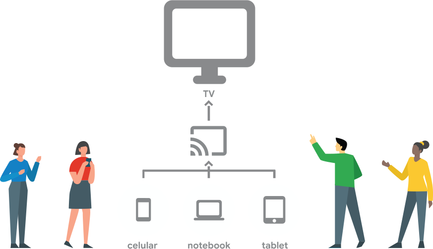 Google Chromecast funciona com iPhone®, iPad®, dispositivos Android, dispositivos Windows® ou Chromebook.
