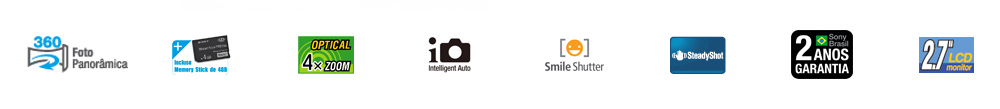 Também vem com estabilizador de imagem SteadyShot, lentes Sony e reconhecimento inteligente de cena (iAuto). Tudo isso com zoom óptico de 4X (zoom digital: 8x) e Memory Stick de 4Gb incluso para guardar, inclusive, suas fotos panorâmicas de até 360º. Sony Cyber-shot: A vida pode ser mais divertida.