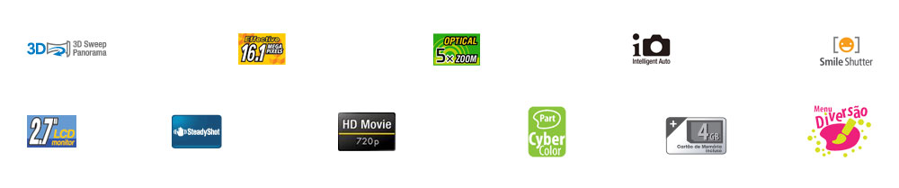 Também vem com estabilizador de imagem SteadyShot, lentes Sony e reconhecimento inteligente de cena (iAuto). Tudo isso com zoom óptico de 5x (zoom digital: 20x) e Memory Stick de 4Gb incluso para guardar, inclusive, suas fotos panorâmicas de até 360º.