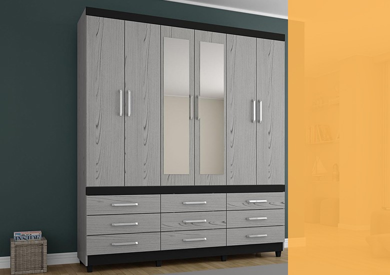 Ele tem 6 portas, cabideiro, calceiro e você pode pendurar as roupas pra mantê-las passadinhas com muita praticidade. E as 9 gavetas são ótimas, ainda mais se você não tem espaço pra colocar uma cômoda! Dá pra guardar com tranquilidade suas peças leves como meias, pijamas, roupas íntimas, acessórios, aquelas blusas de frio que você não usa sempre, documentos e muito mais.