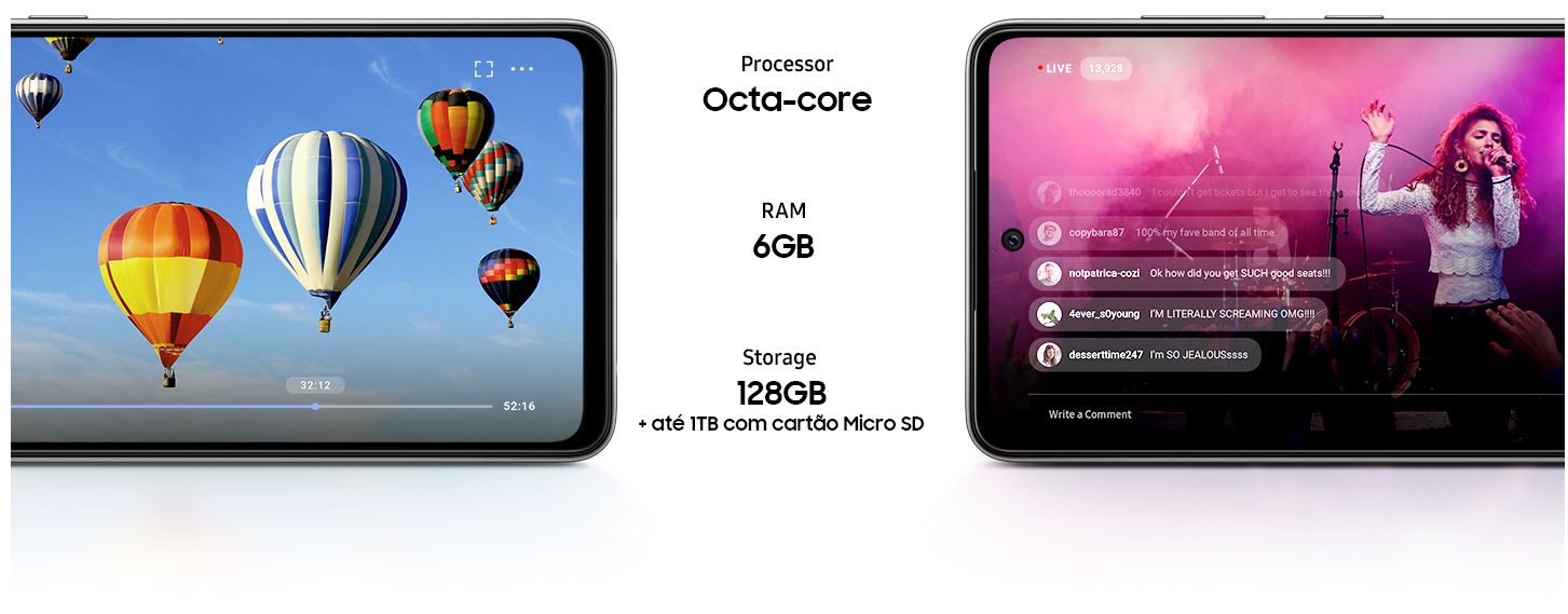 processador Octa-core avançado e 6GB de RAM. Armazene mais e exclua menos