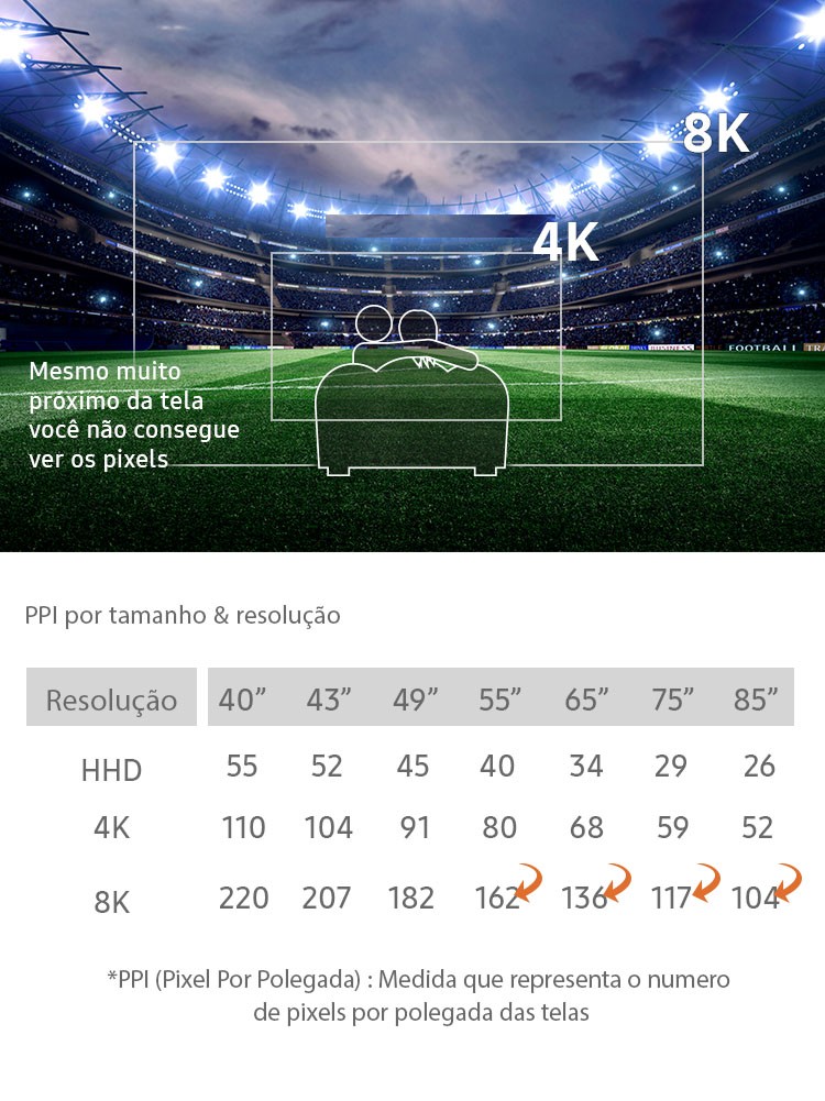 A maior quantidade de pixels por polegada faz da QLED 8K perfeita para telas de 65" e acima, garantindo a melhor experiência de imagem disponível no mercado.