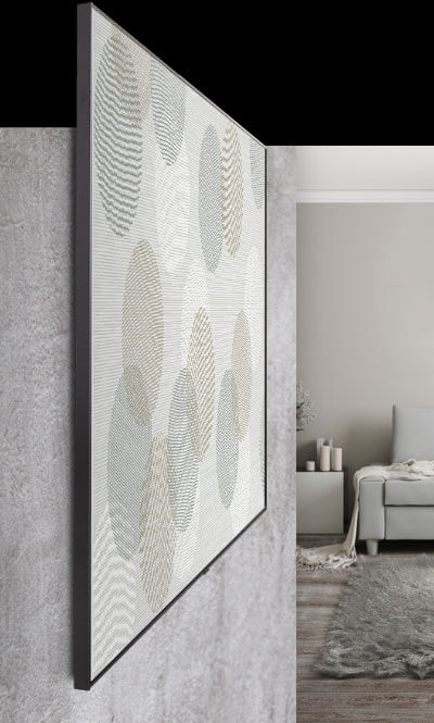 Ao invés de uma tela preta, ative o exclusivo MODO AMBIENTE 2.0 e combine a QLED TV com o seu espaço.