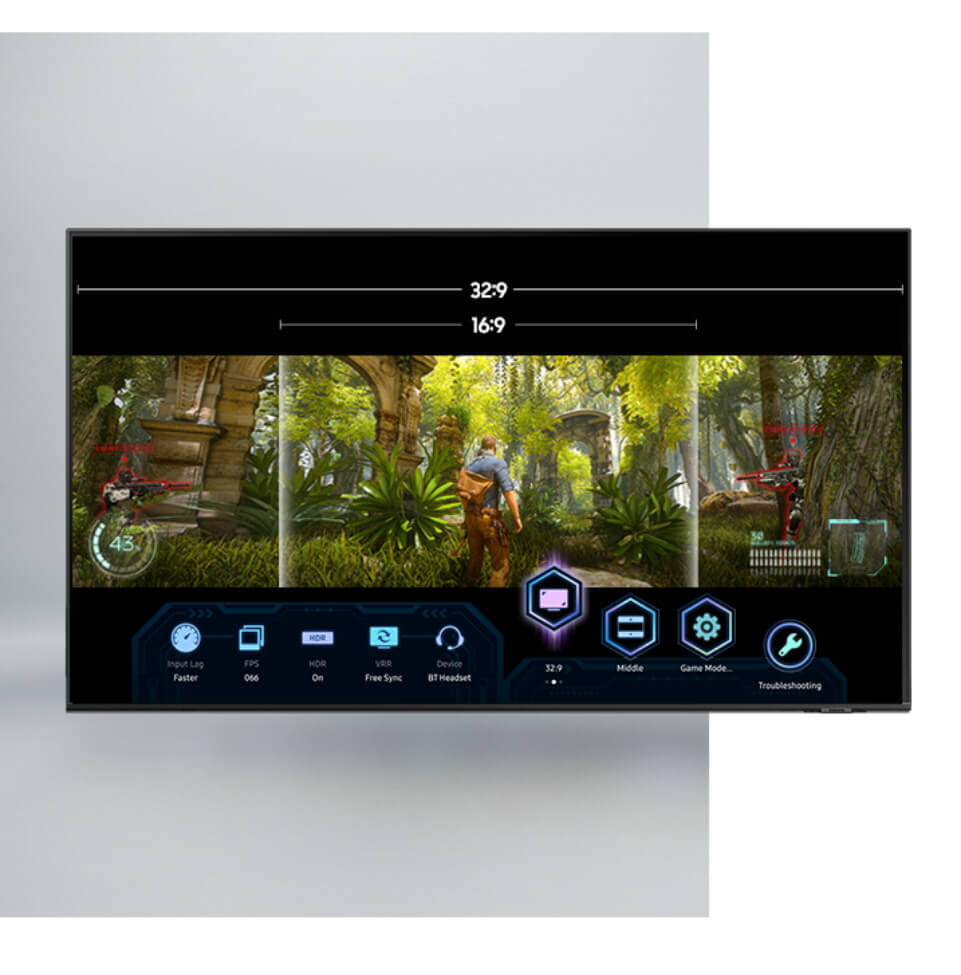 Tenha a melhor visualização do seu game com opções de formato de tela de 21:9 ou 32:9, além de um menu intuitivo pra você consultar o input lag, FPS, HDR e outras informações importantes com rapidez e realizar ajustes que fazem a diferença na partida.