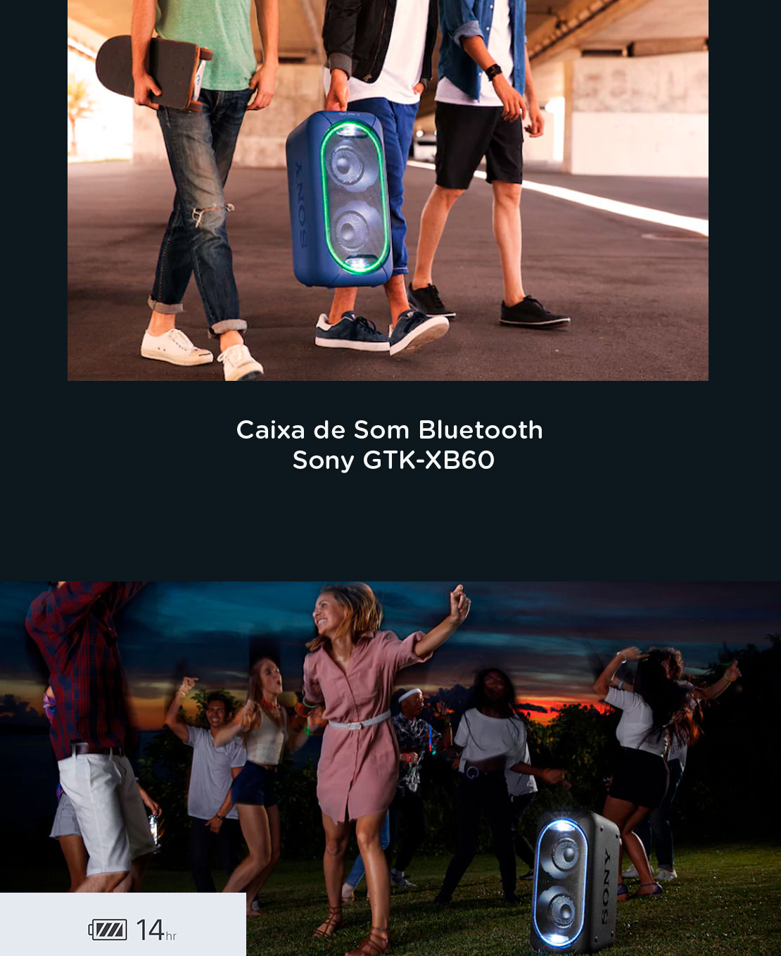 e dura até 14 horas com as luzes da caixa apagadas e o volume no nível 17!