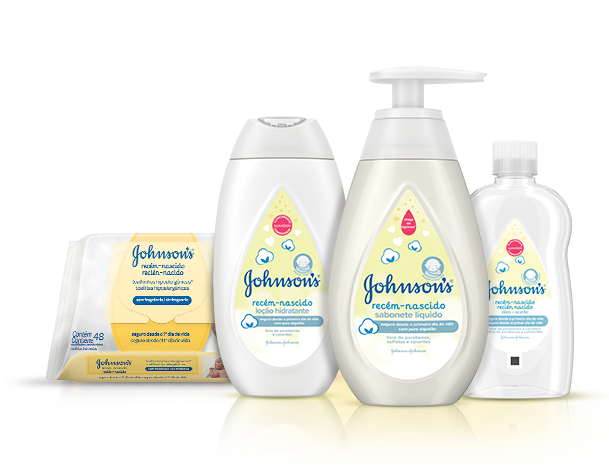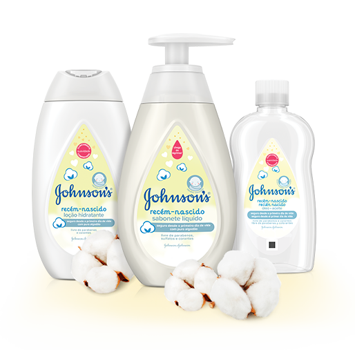 Conheça a linha JOHNSON’S® para recém-nascidos com 100% puro algodão, criada especialmente para a pele delicada e em desenvolvimento dos bebês que acabaram de nascer. Você vai encontrar na linha JOHNSON’S® Recém-nascido: sabonete líquido, loção hidratante, óleo e lenços umedecidos, que podem ser usados da cabeça aos pés e são seguros para o uso desde o primeiro dia de vida.