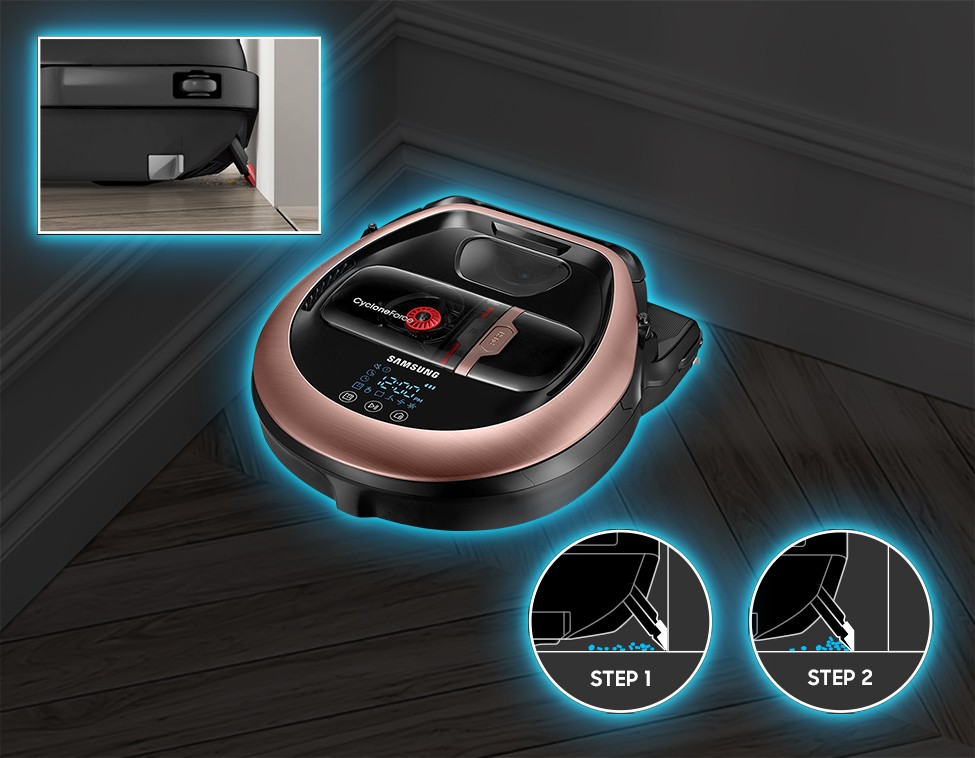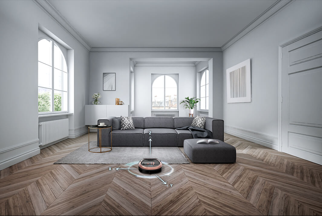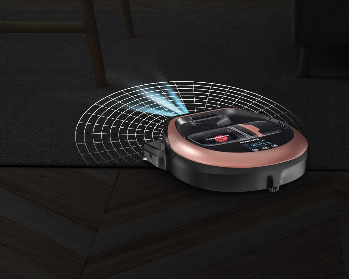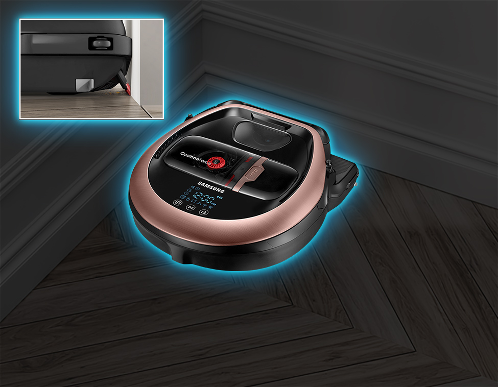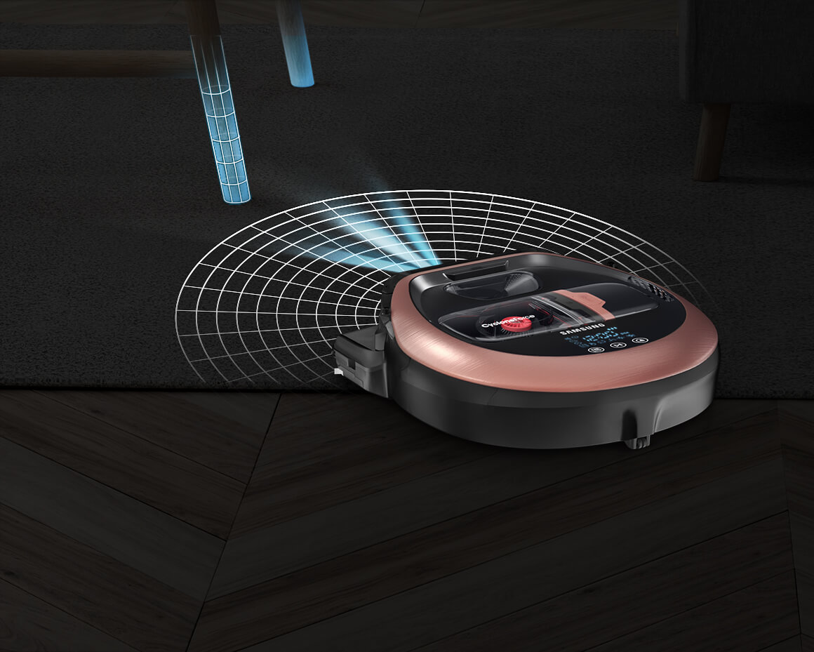 O Full View Sensor scannea com precisão uma área ampla, para que saiba exatamente aonde ir evitando lacunas e pequenos obstáculos. Além disso, limpa repetidamente os cantos da sala com 10% a mais de potência de sucção.4