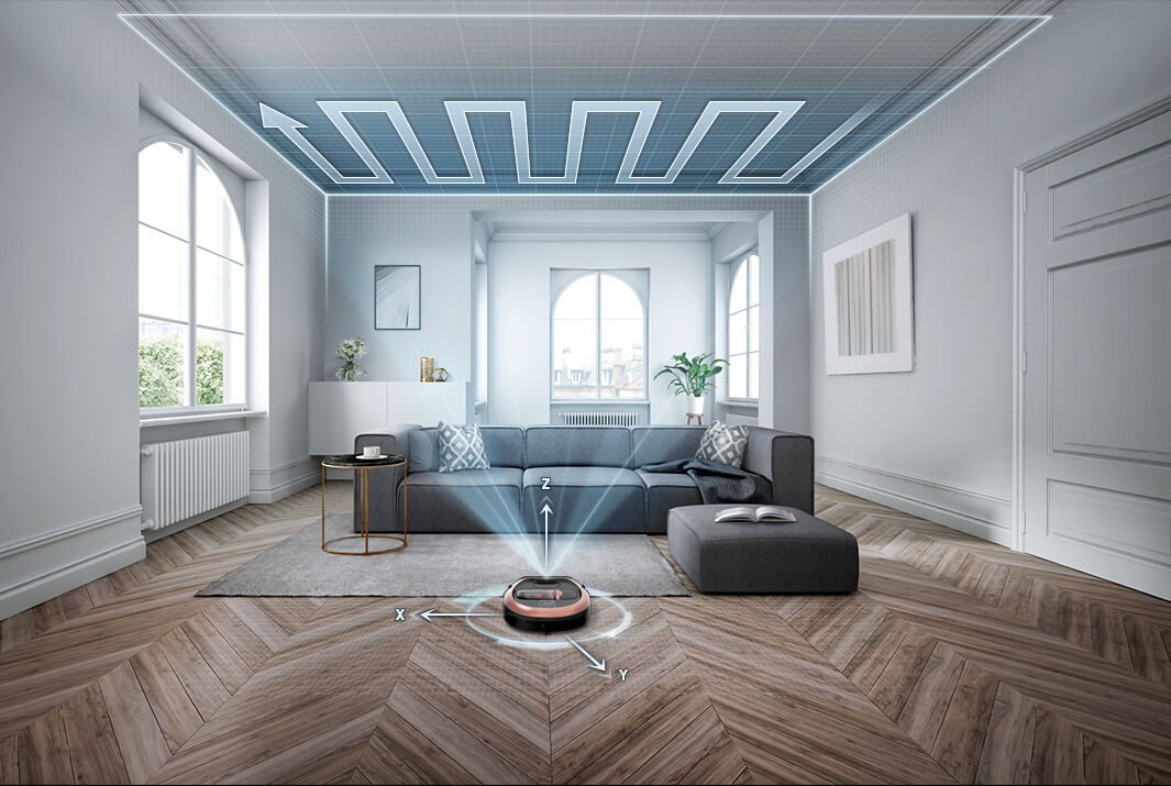 O Visionary Mapping cria um mapa detalhado, que reduz o tempo de limpeza seguindo de uma rota mais eficiente.3