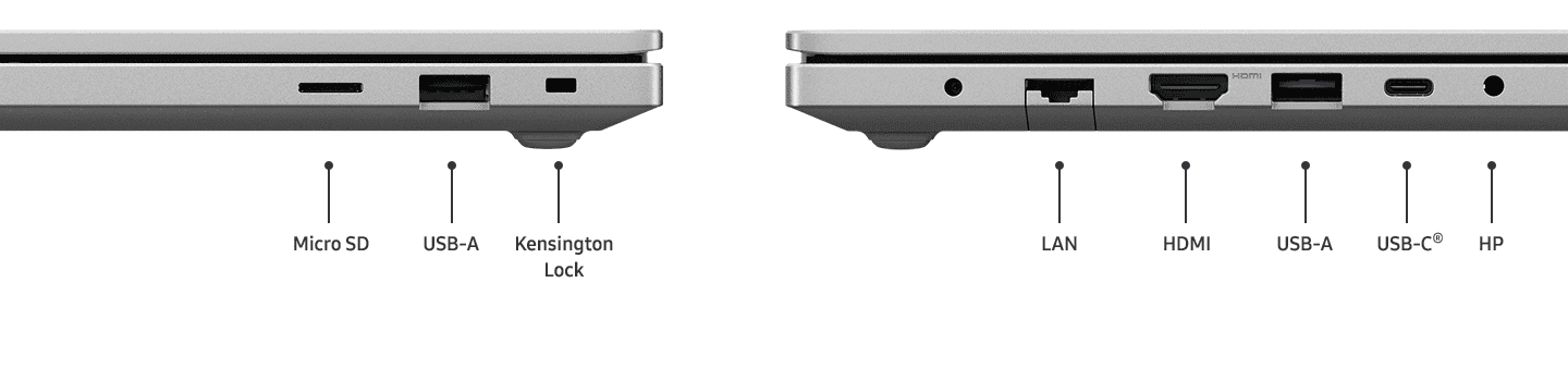 O Samsung Book vem com uma variedade de diferentes portas; LAN, HDMI, USB-Ax2,USB-C® e Micro SD, foram inseridas para melhorar a conectividade e produtividade.