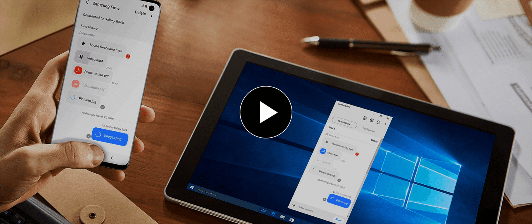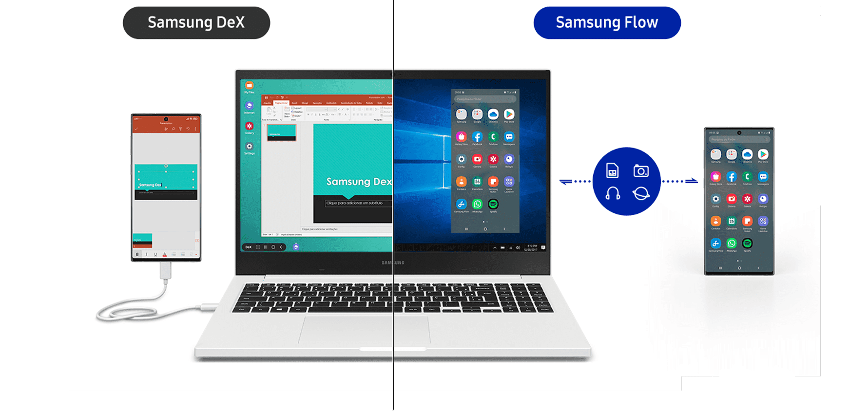 Use o Samsung Flow para conectar seu computador portátil e seu smartphone facilmente. Transfira arquivos