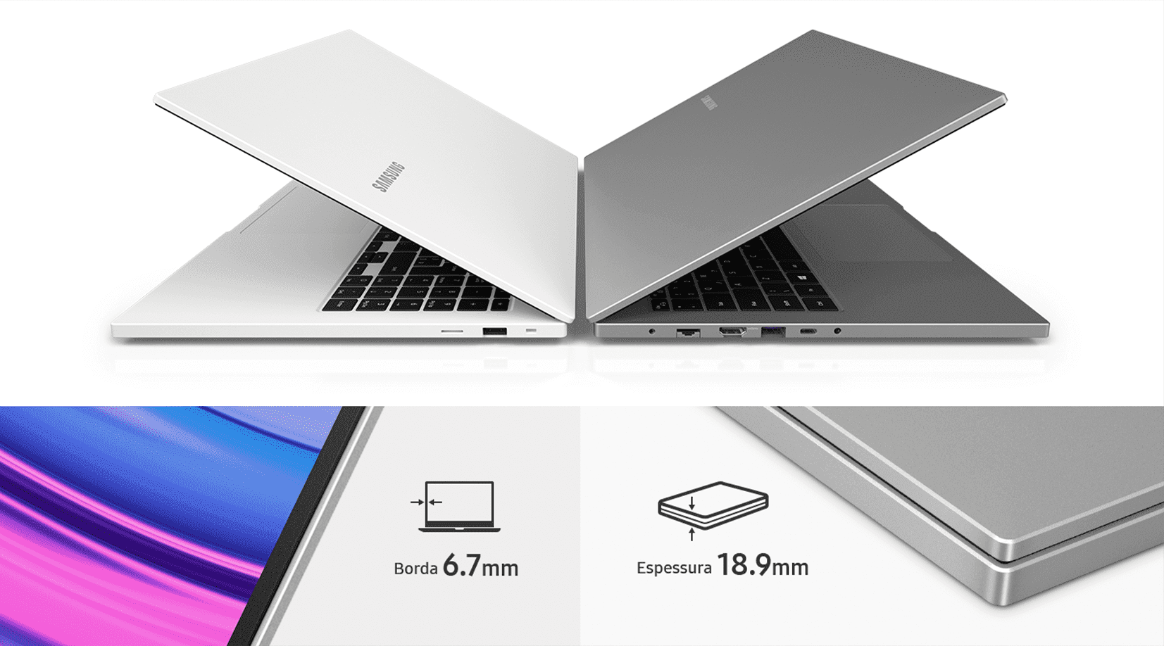 O Samsung Book é feito para durar, mas sem deixar de lado o acabamento premium e a estética moderna.