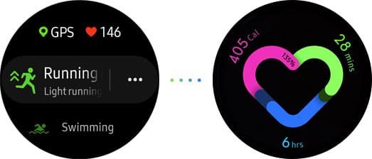 A sua única preocupação é colocar o Galaxy Watch Active2 no pulso e se exercitar. Com a opção de monitoramento programado ou automático com 7 exercícios incluindo treino de natação. Enquanto o monitoramento manual funciona para várias atividades que você pode programar.