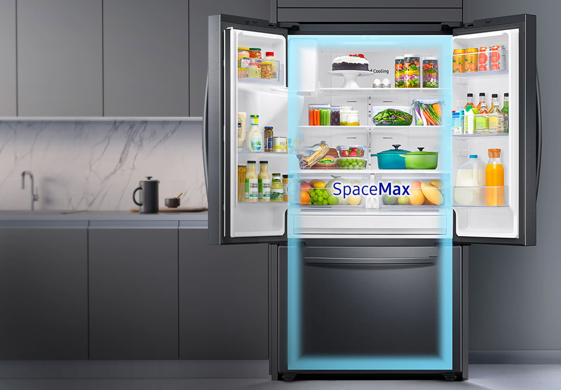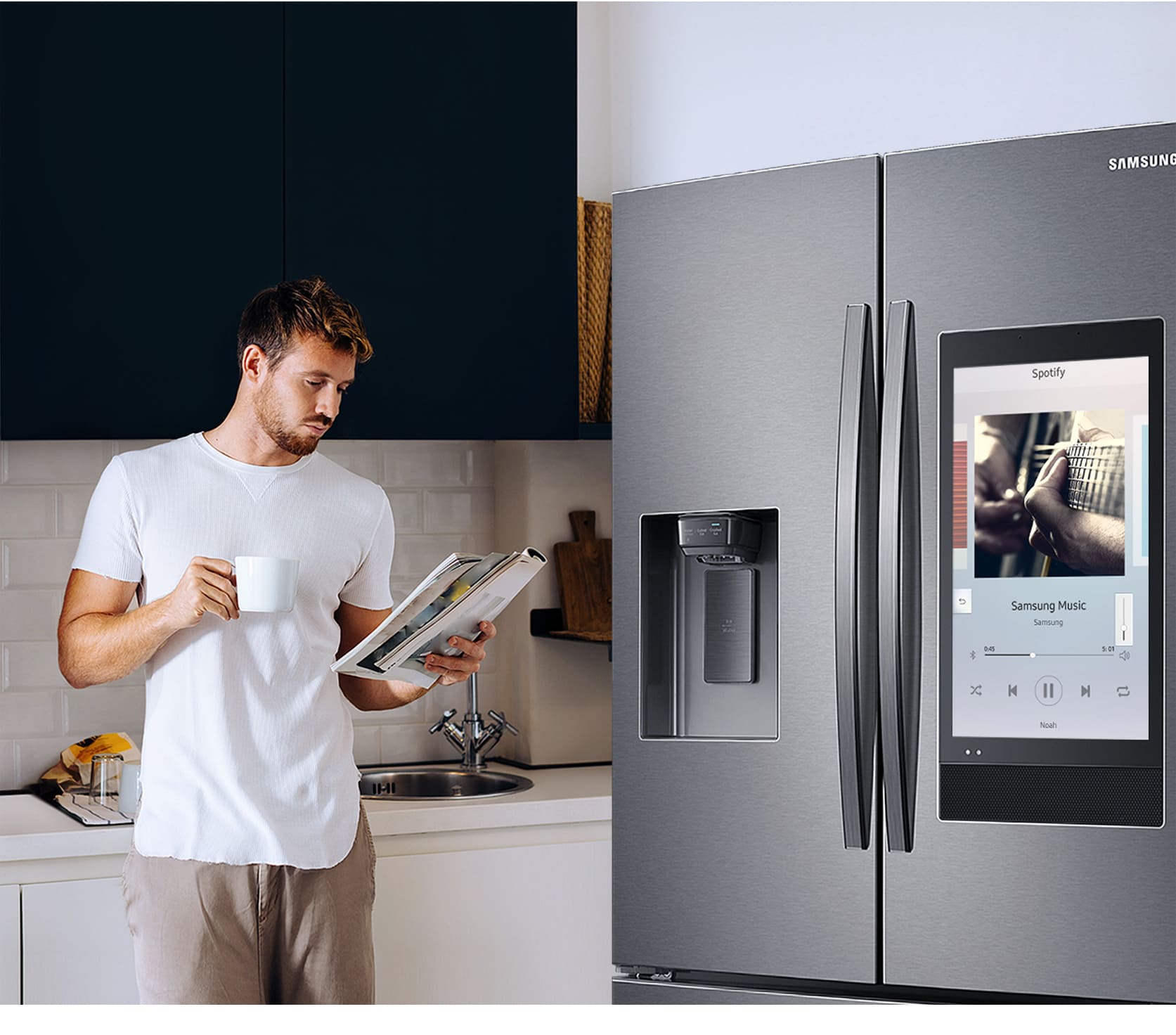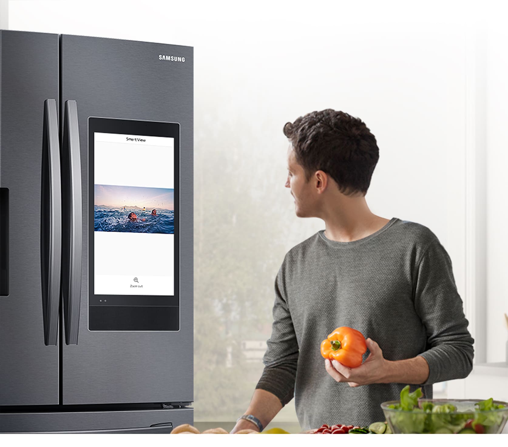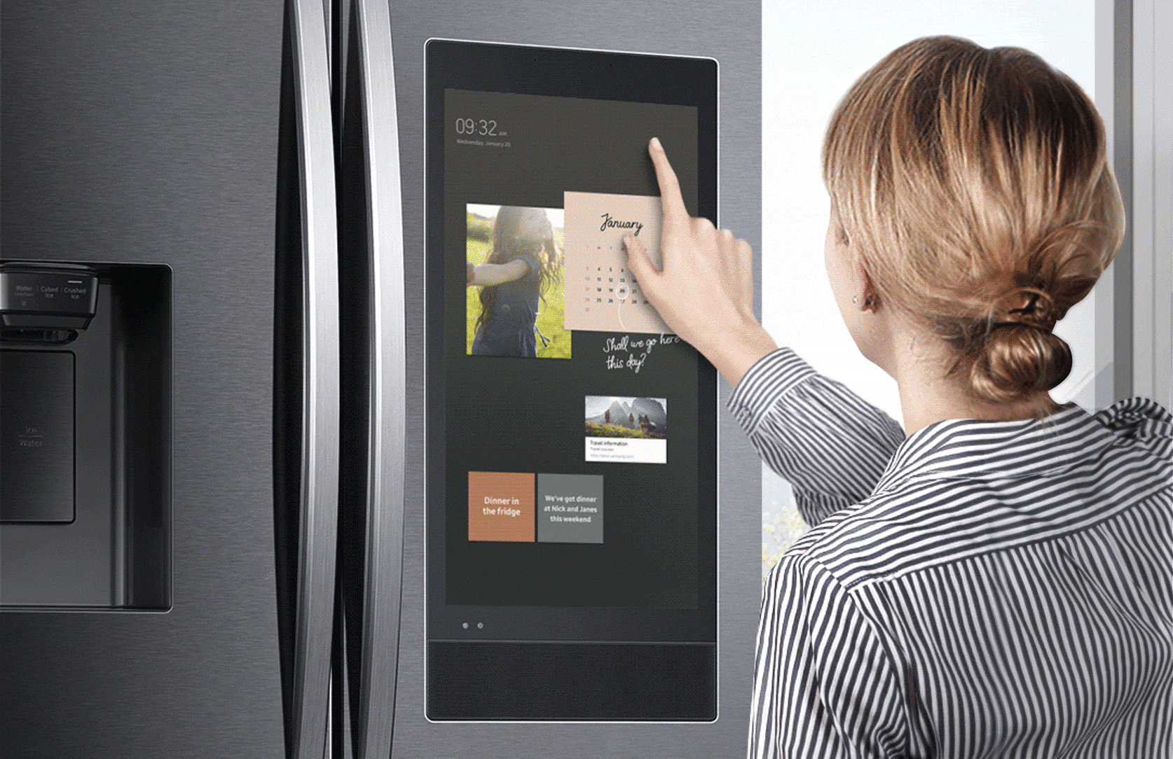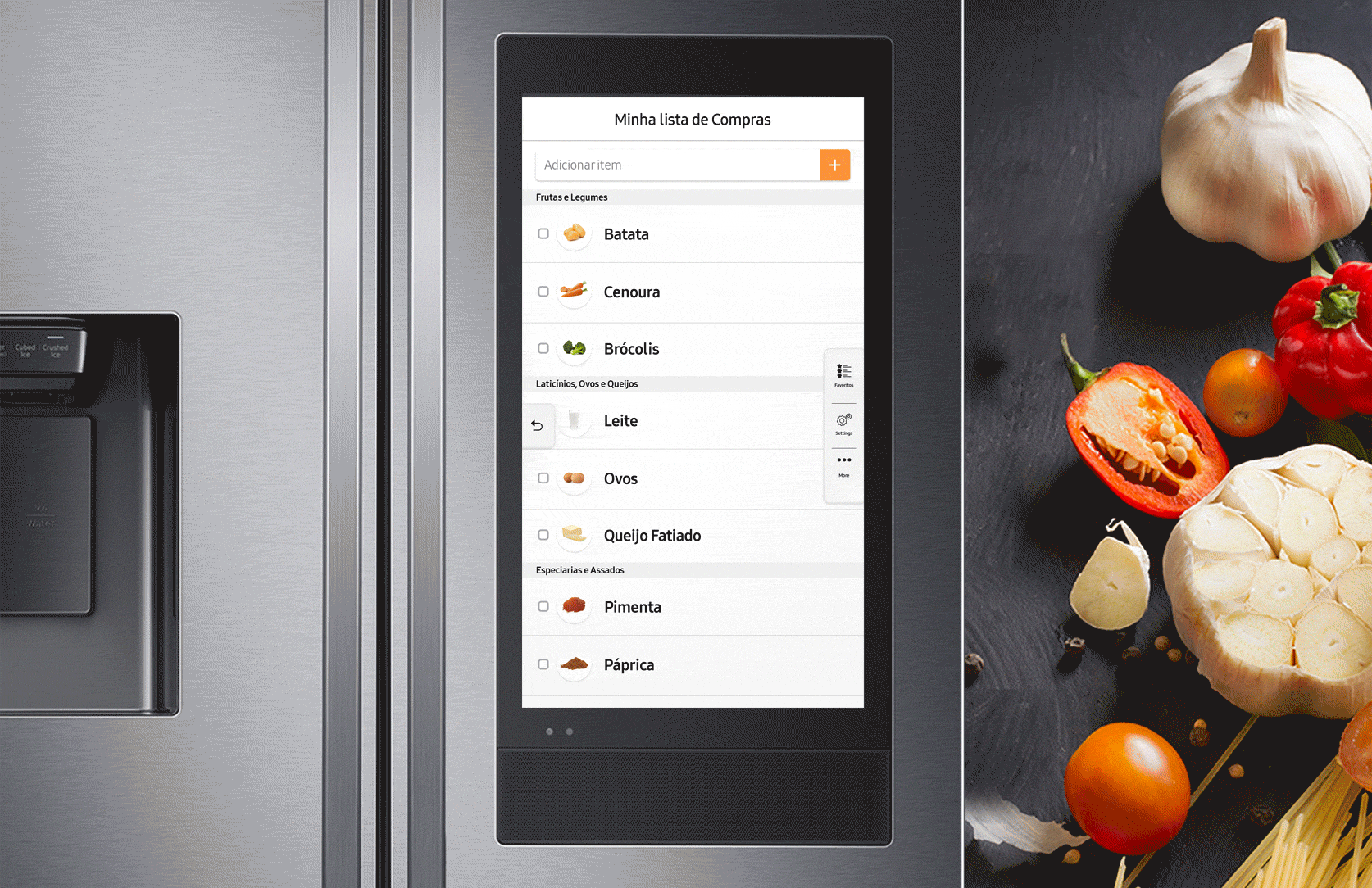 Veja o que tem dentro da geladeira a qualquer momento e um qualquer lugar pelo seu smartphone ou pela tela inicial da geladeira, sem abrir a porta. A câmera interna mostra os alimentos que você tem, além de indicar quantos dias faltam para vencer e permite que você crie uma lista de compras e lembretes sobre alimentos.