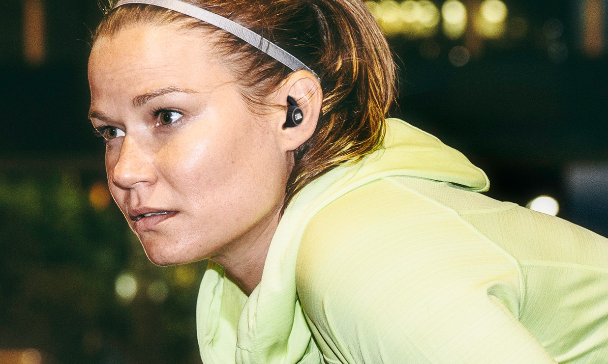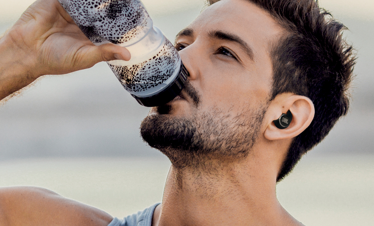 Graças à classificação IPX7 à prova d'água/suor, você pode se molhar o quanto quiser sem se preocupar. E com um logotipo JBL refletivo para maior visibilidade à noite.