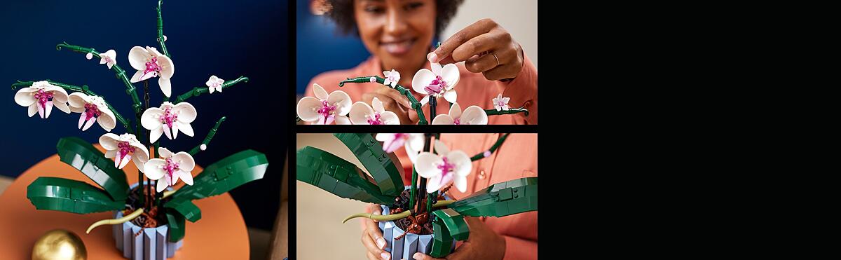 Desfrute de um projeto gratificante para adultos, enquanto constrói uma peça de decoração de orquídea alegre e elegante.