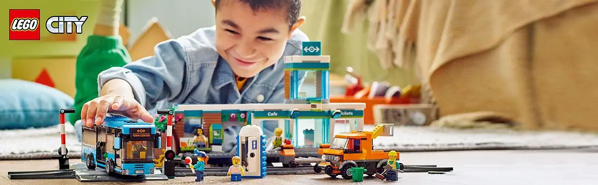 Crie o cenário para a brincadeira imaginativa com o conjunto LEGO® City Estação de Trem para crianças a partir de 7 anos.