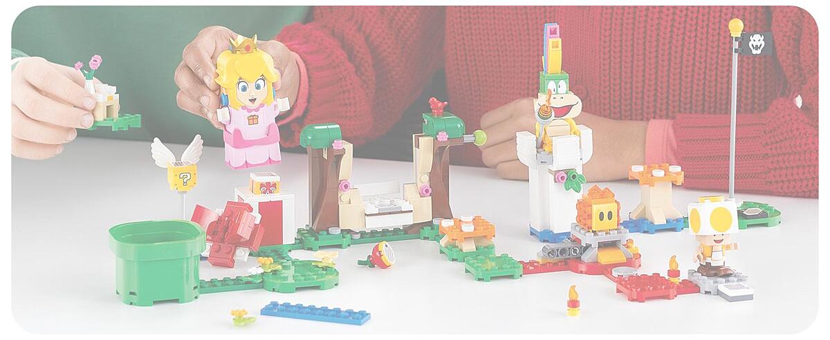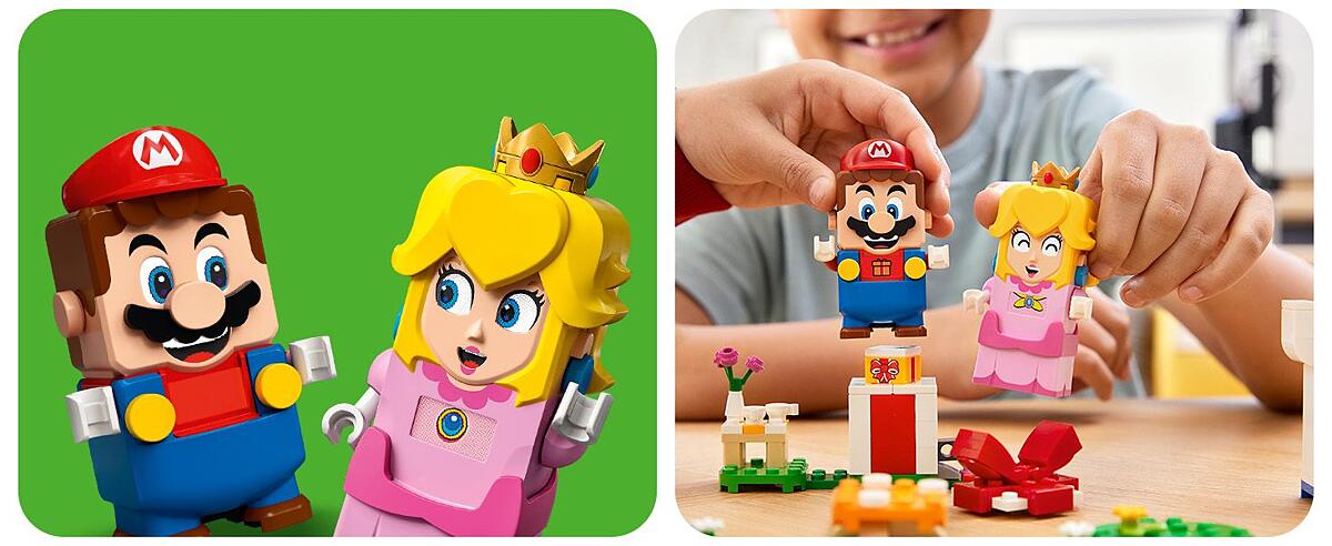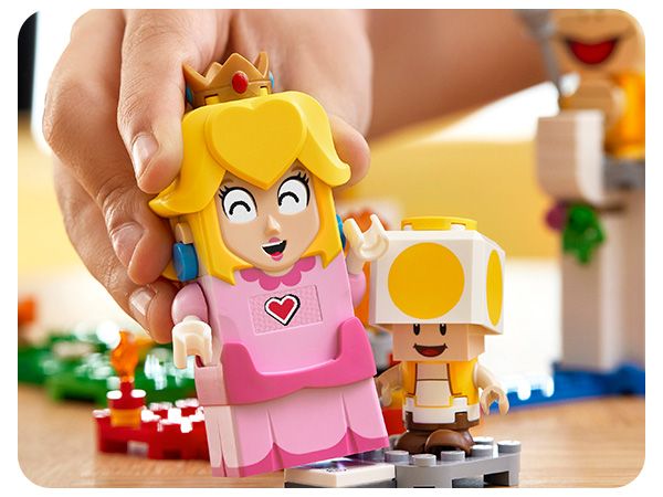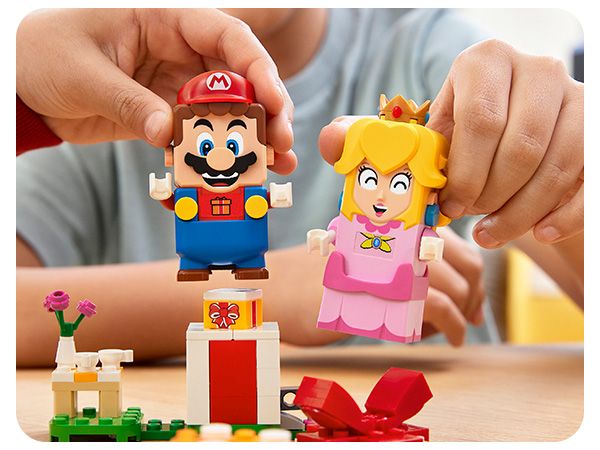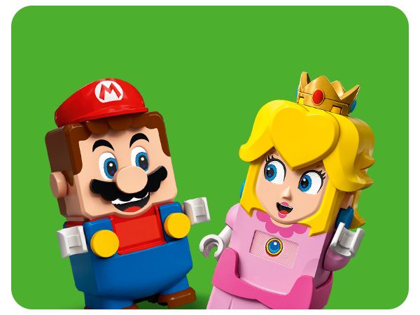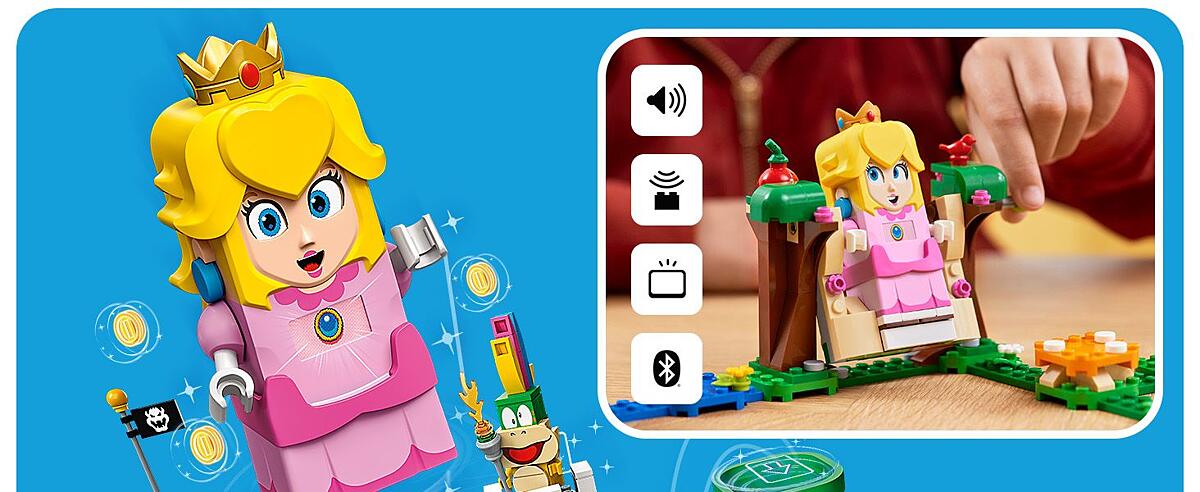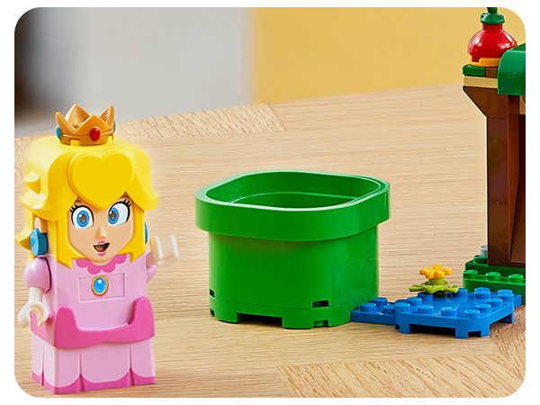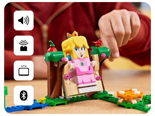A figura LEGO® Peach™ pode ser conectada ao LEGO® Mario™ ou LEGO® Luigi™ (vendidos separadamente) via Bluetooth para eles completarem a fase juntos.