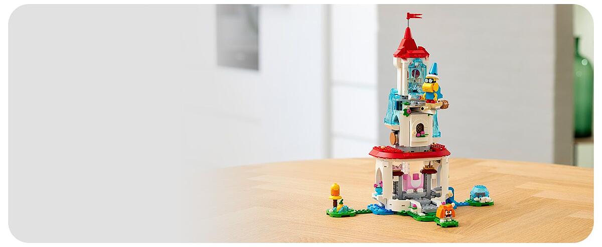 Traga ainda mais animação à brincadeira com o Pacote de Expansão Traje Peach Gata e Torre Gelada (71407), que vem com uma torre construída com peças e muitos desafios para pegar moedas.