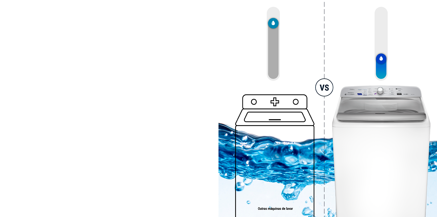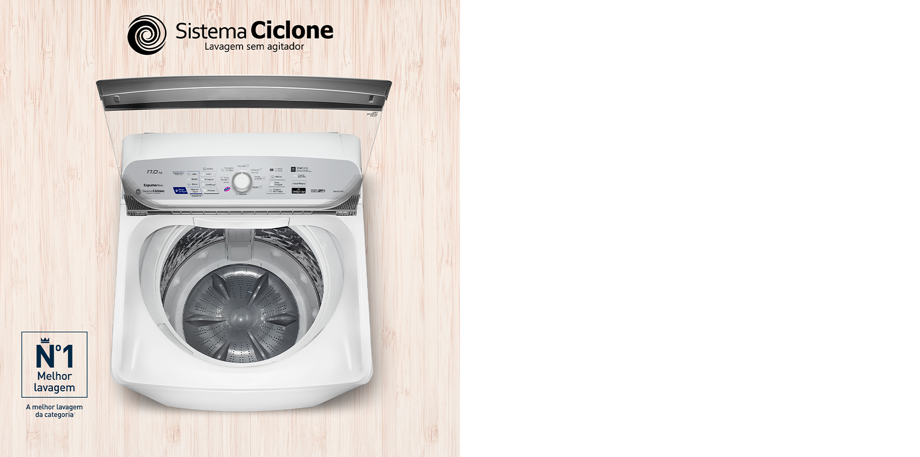 ¹ De acordo com eficiência de lavagem em água fria, segundo tabela Inmetro de consumo/eficiência energética para máquinas de lavar automáticas com abertura superior (top load), edição 2022, de 23/06/2022.