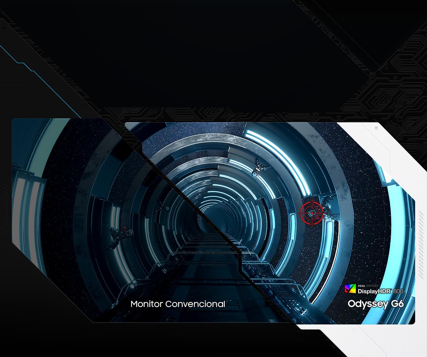 Revele todos os detalhes. DisplayHDR 600 proporciona mais contraste, com pretos mais profundos e brancos mais brilhantes para ajudá-lo a descobrir inimigos ou segredos escondidos nas sombras. Mesmo em cenas escuras, cada detalhe brilha com clareza.