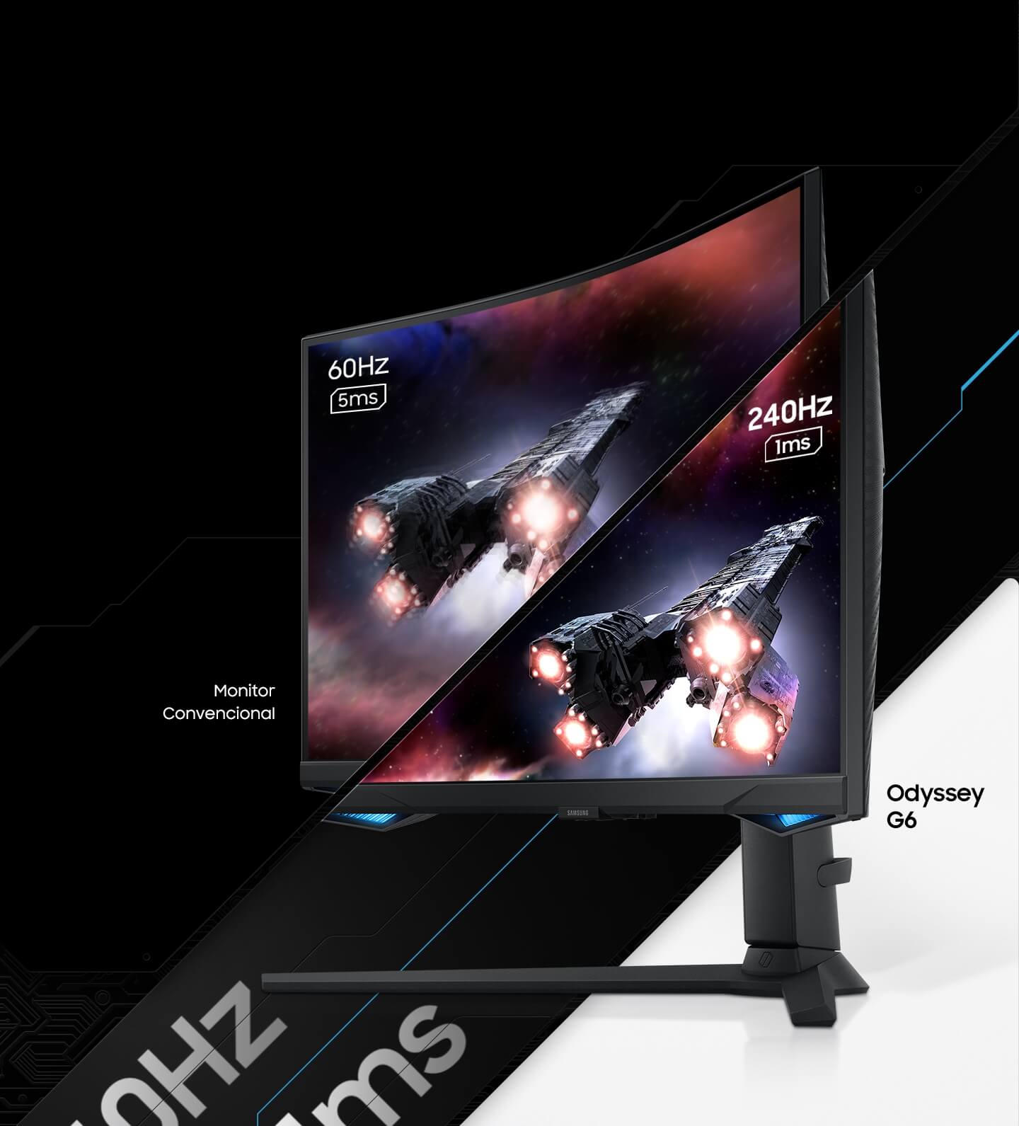 Velocidade nas cenas. A taxa de atualização de 240 Hz elimina o atraso para uma jogabilidade emocionante com ação ultra-suave. Ataque os inimigos logo ao vê-los com um tempo de resposta de 1ms e quadros sem borrão.