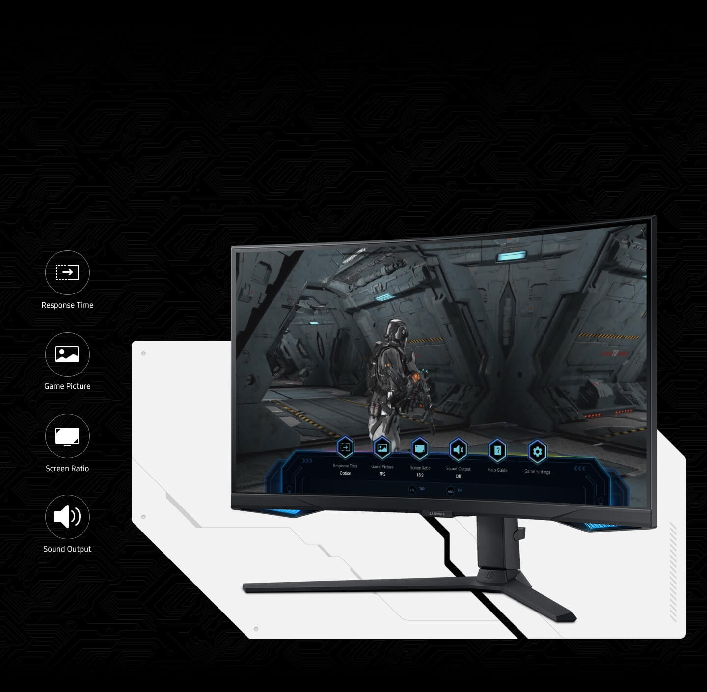 Verifique e controle as configurações do jogo em um instante. Agora, você pode visualizar facilmente o status das configurações mais importantes. Modifique o tempo de resposta, proporção de tela ou o modo de imagem sem ter que sair da tela do jogo para mantê-lo concentrado em seu objetivo.