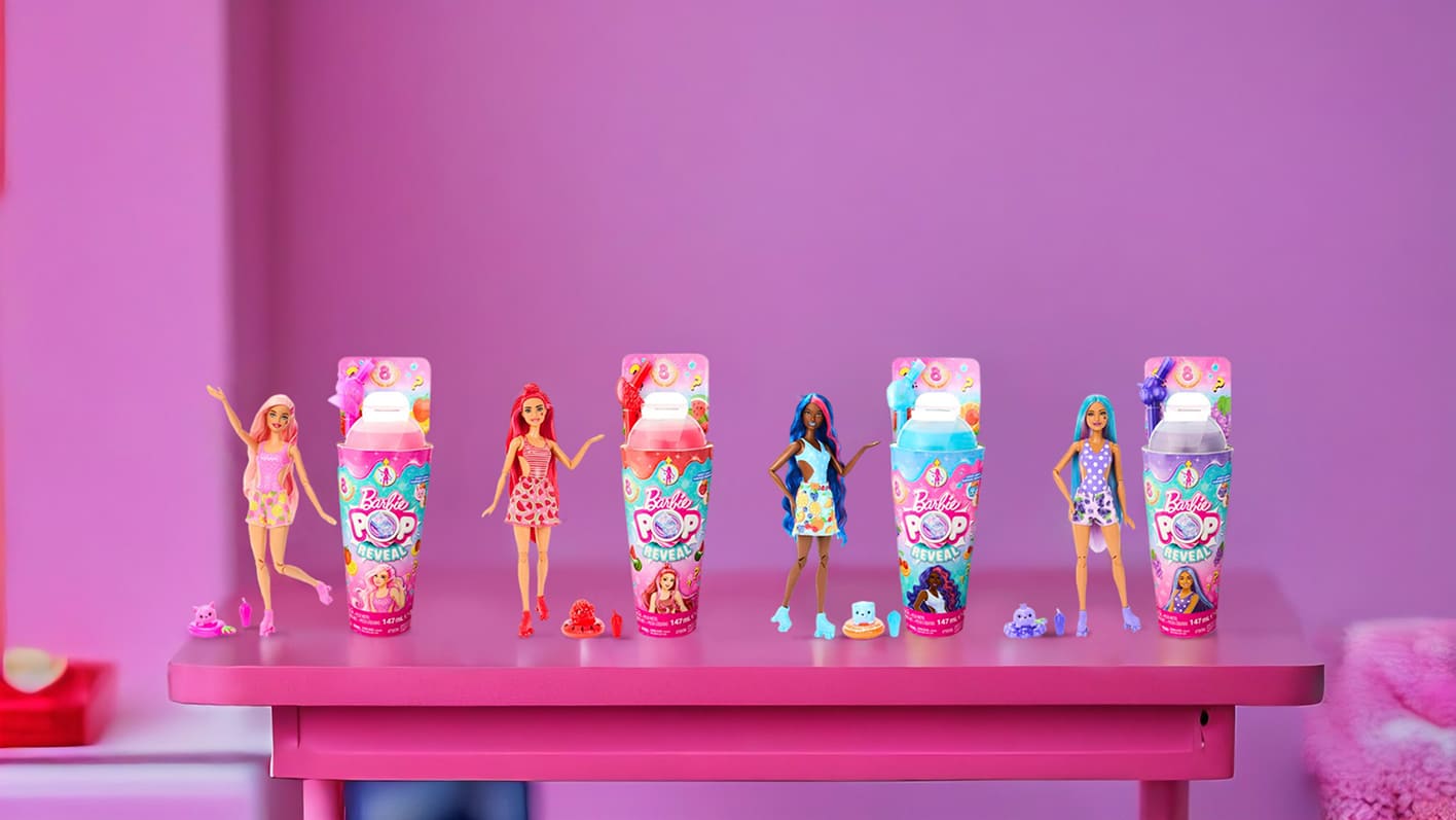Descubra a diversão das bonecas Barbie Pop Reveal com uma experiência de unboxing emocionante que oferece oito surpresas sensoriais incríveis! Você está pronto para revelar sua boneca favorita? Ao abrir a embalagem inspirada em copo, você encontrará um dos quatro sabores da Série Fruit: limonada de morango, ponche de frutas, raspadinha de melancia ou refrigerante de uva.