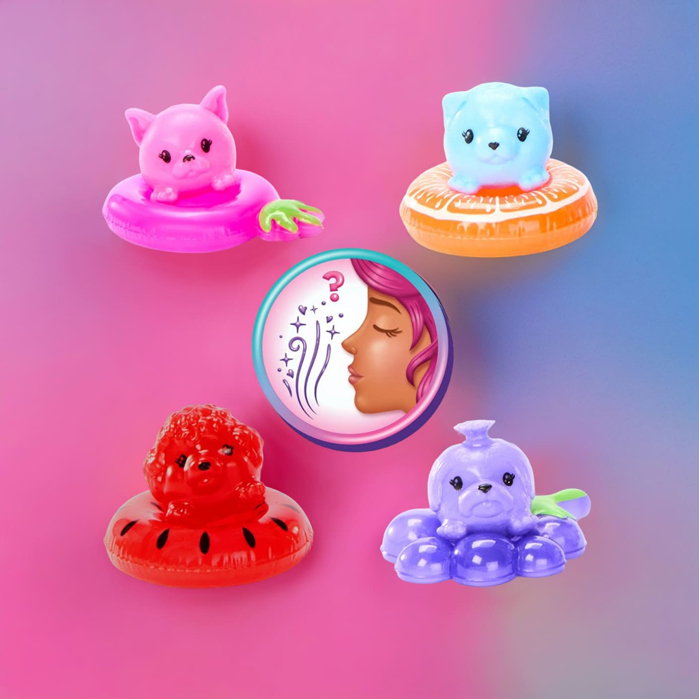 Continue desembrulhando até encontrar uma boneca com um delicioso cheirinho de fruta, um adorável bichinho de estimação perfumado, peças de roupas e acessórios surpreendentes. Cada boneca Barbie Pop Reveal é articulada, apresenta cabelo e maquiagem que mudam de cor e é uma verdadeira preciosidade.
