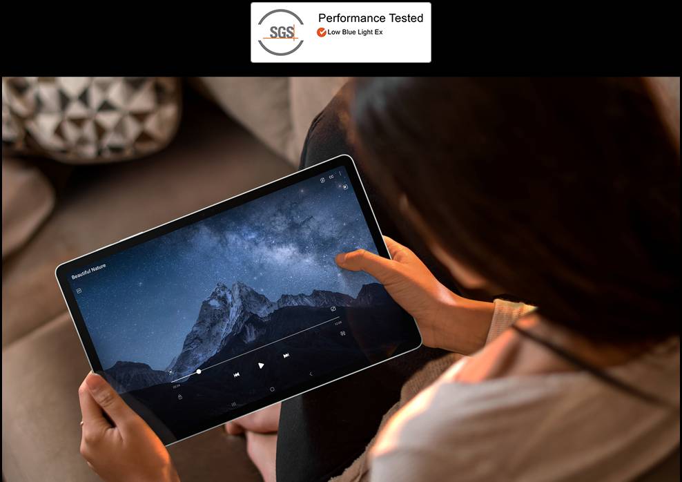 *A tela usada no Galaxy Tab S9 FE e no Tab S9 FE+ recebeu a certificação "Low