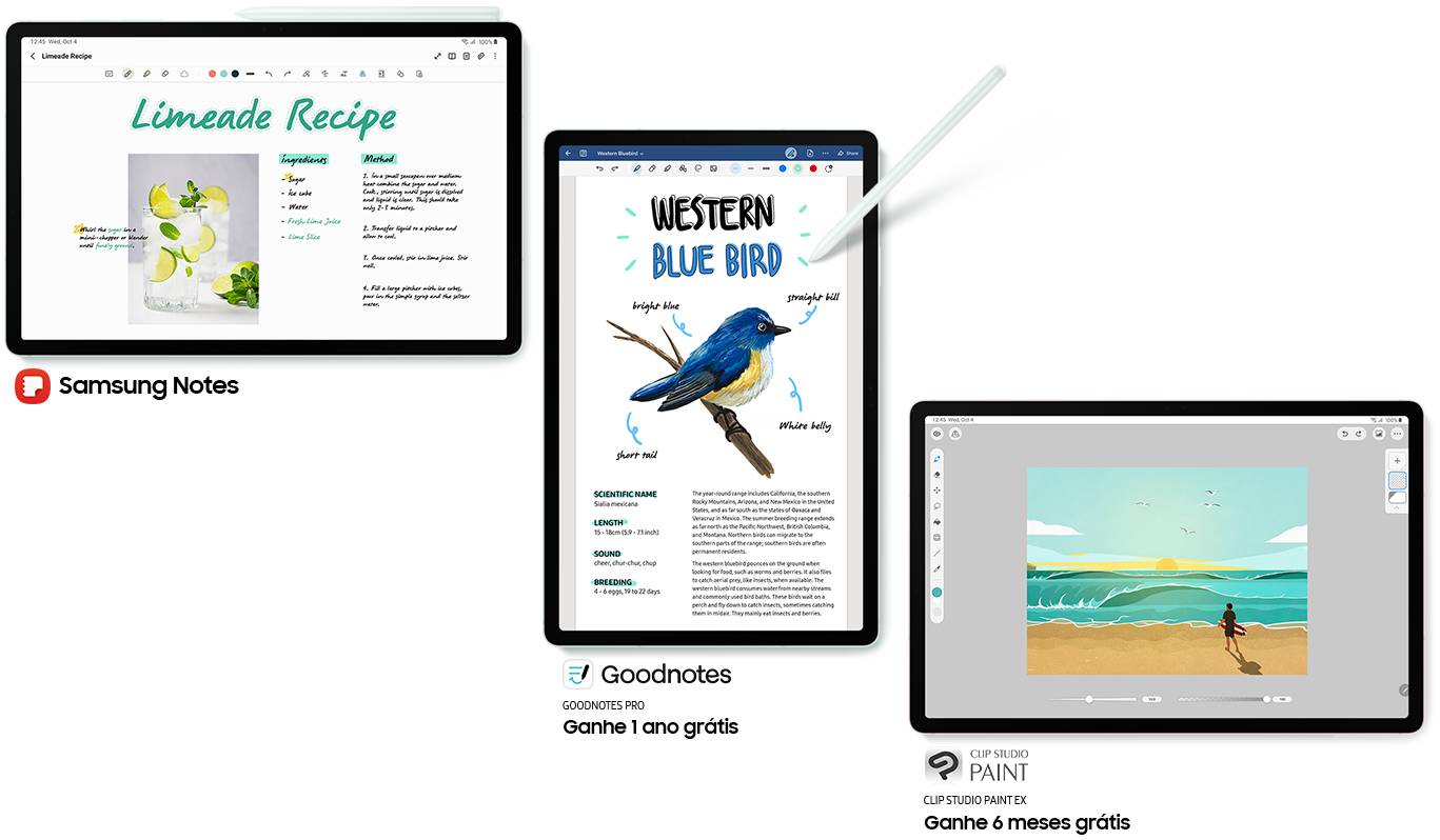 **O aplicativo GoodNotes requer download separado da Galaxy Store e vem com uma versão