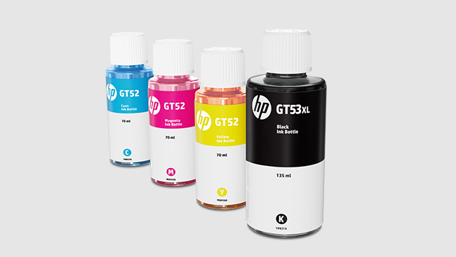 | Consumíveis | Garrafa HP GT53XL, preto (aproximadamente 6000 páginas); Garrafa HP GT53, preto (aproximadamente 4000 páginas); Garrafa HP GT52, ciano (aproximadamente 8000 páginas); Garrafa HP GT52, magenta (aproximadamente 8000 páginas), Garrafa HP GT52, amarelo (aproximadamente 8000 páginas) |