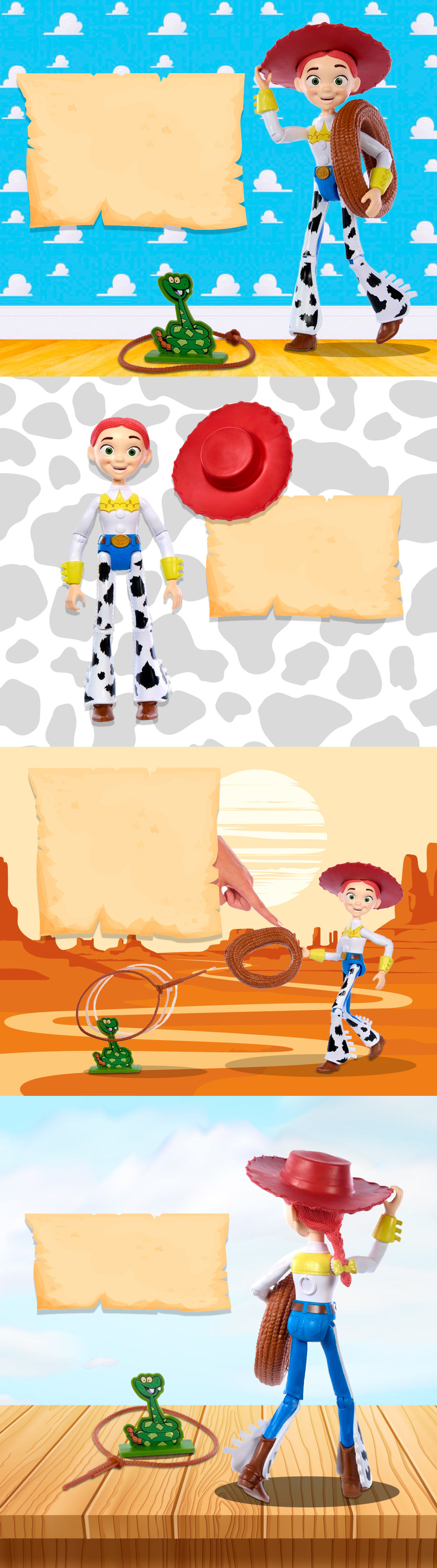 de duas peças que se encaixa perfeitamente nas mãozinhas da Jessie.