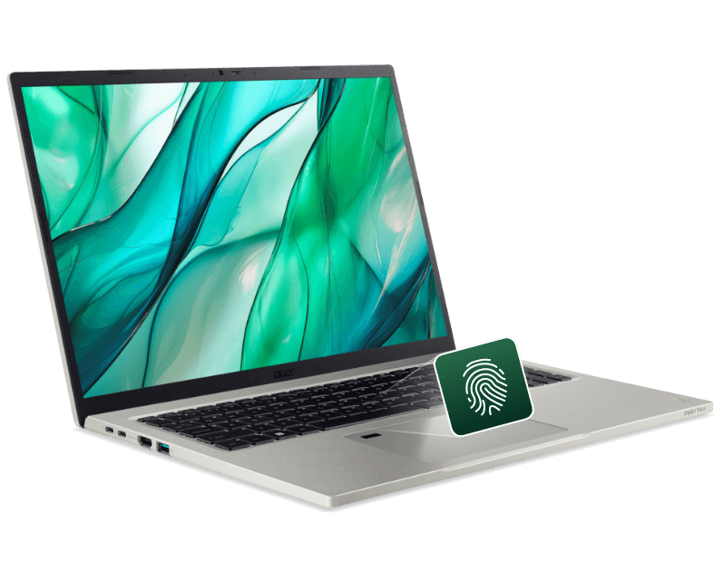 Diga adeus às senhas com a tecnologia Acer Fingerprint reader, que permite o desbloqueio da tela pela digital com maior segurança.