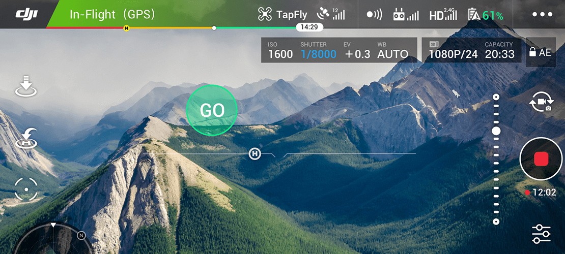 Esse app é incrível e permite que você faça transmissão ao vivo, edite e compartilhe seus vídeos aéreos e fotos instantaneamente! Viu que demais? Ele ainda mostra a duração da bateria e calcula o tempo de voo restante de acordo com a distância percorrida. E pra quem entende mais de fotografia, ele ainda disponibiliza controles manuais da câmera como o ISO, abertura, velocidade de obturador e muito mais!