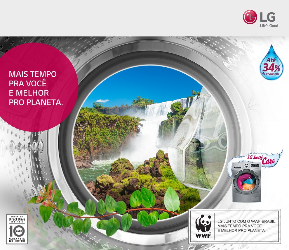 Hoje um dos maiores problemas do Planeta é a falta de água. Por isso, a LG se uniu ao WWF-Brasil*** para ajudar você a cuidar do planeta.