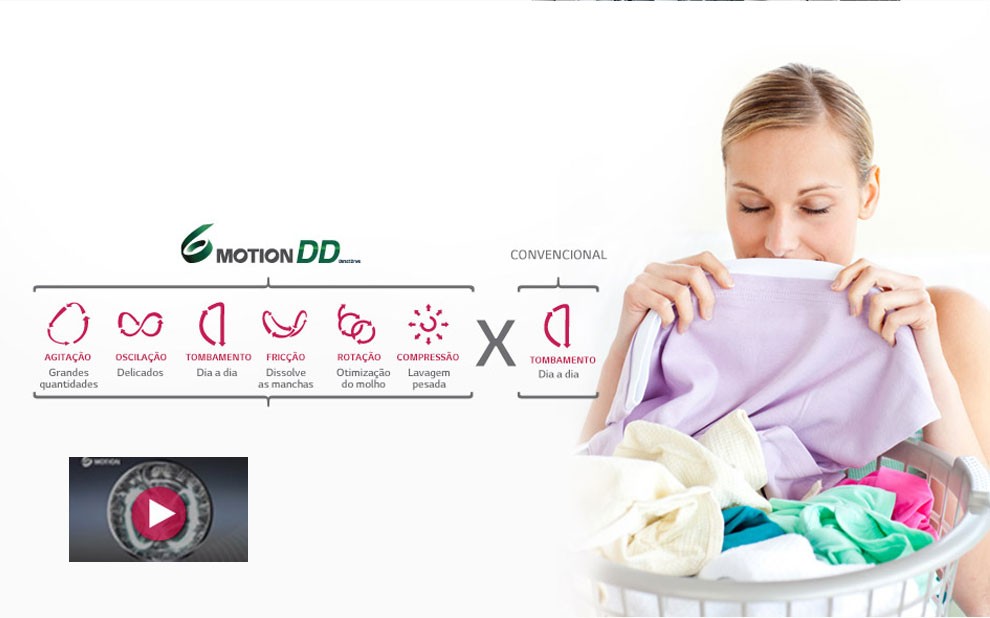 As lava e seca da LG realizam 6 movimentos contra 1 das convencionais. Todas as lavagens ficam melhores porque são personalizadas para cada tipo de roupa.
