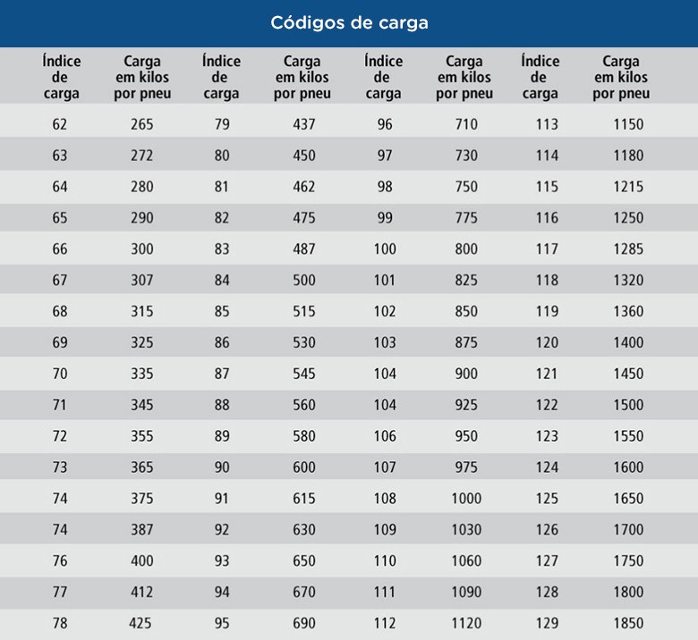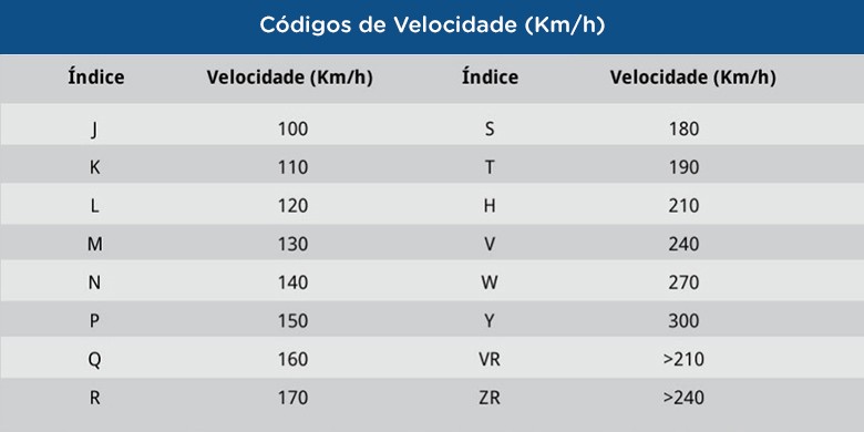 Índice de carga/velocidade