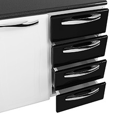 Já as 4 gavetas são ótimas para os talheres, panos de prato e toalhas de mesa.