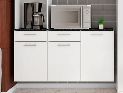 é bem distribuído em 2 portas e 1 gaveta! Dá pra guardar aquelas panelas e utensílios que você mais usa, pra agilizar ainda mais sua rotina!